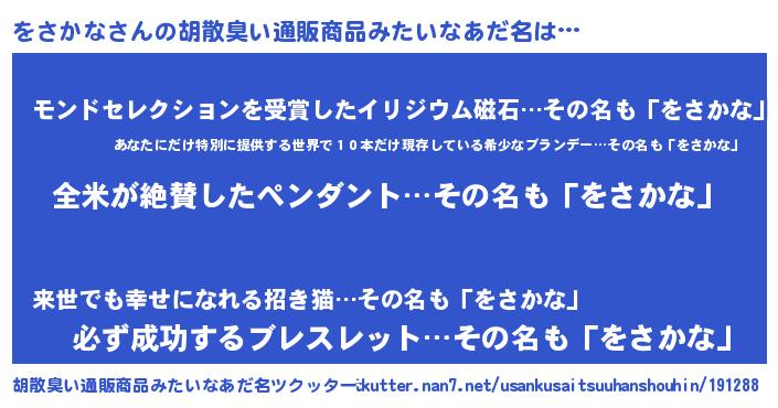| ポケモン風あだ名 | 『ヒヲサカナ』『ヲックウザ』 |