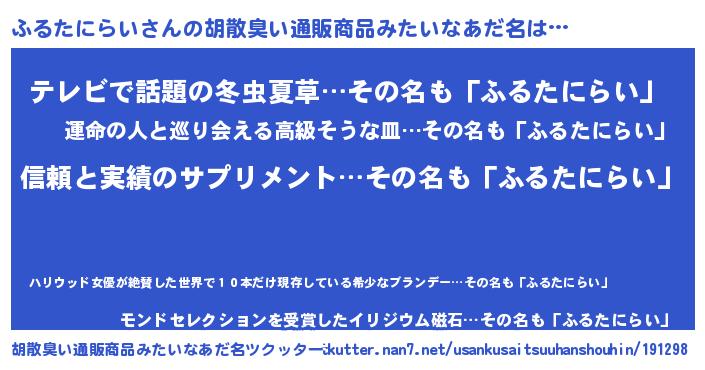 | ヘコむあだ名 | 『ふるお』『つくし』『ふるにゅー』 |