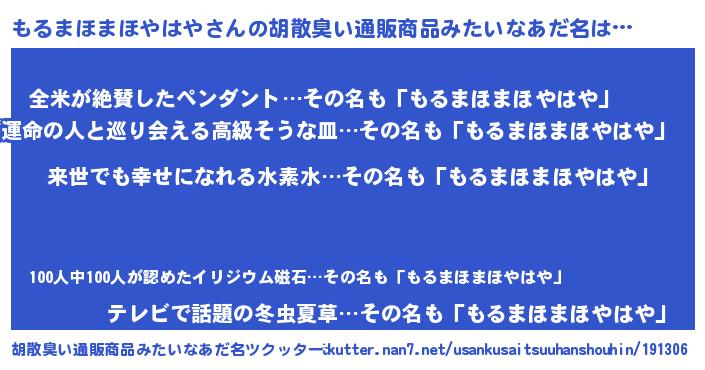| ヘコむあだ名 | 『もるまほまほやはや(震え声)』『なまこ酢』 |