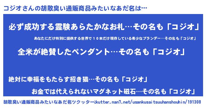 | 意味不明あだ名 | 『とにかく怪しいコジオ』 |