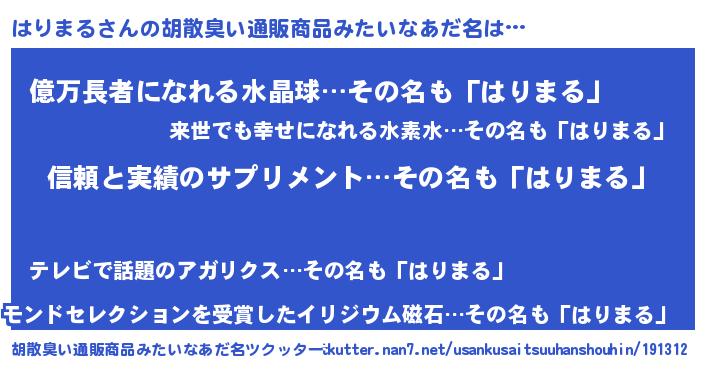 | ヒーロー風カッコイイあだ名 | 『魔戒騎士ハリ』『スーパーハリマル』 |