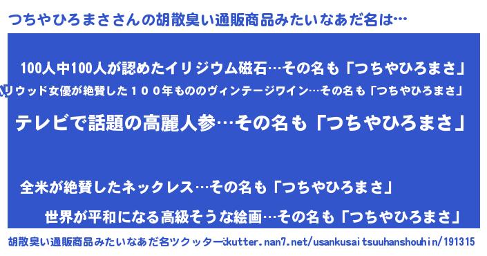 | 男性向けラノベタイトル風あだ名 | 『はたらくつちやひろまささま!』 |