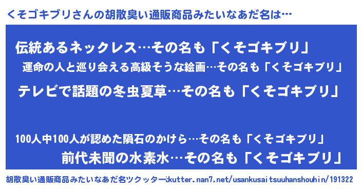 | 男性向けラノベタイトル風あだ名 | 『転生したらくそゴキブリだった件』 |