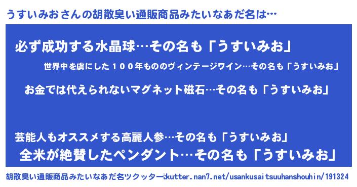 | 欧米人風あだ名 | 『うすいみお・ステッグマイヤー』 |