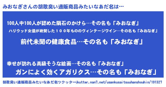 みおなぎさんの胡散臭い通販商品みたいなあだ名をツクッター!
