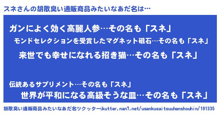| 意味不明あだ名 | 『永久保存スネ』『自称スネ』 |