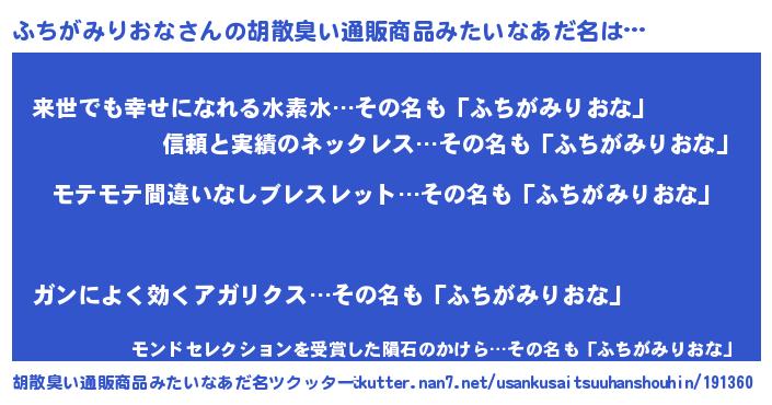 | ヘコむあだ名 | 『ふちにー』『ふちがみりおな(震え声)』 |