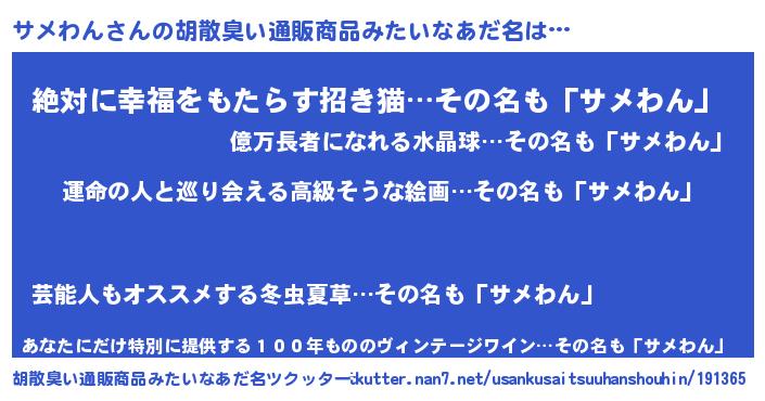 | ファンタジー風あだ名 | 『エターナルサメワンー』『サメフェル』 |