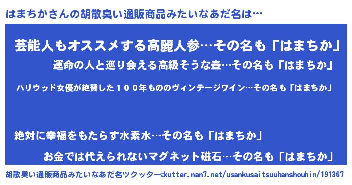 | 恥ずかしいあだ名 | 『ハマチカデラックス』『はまっちょ』 |