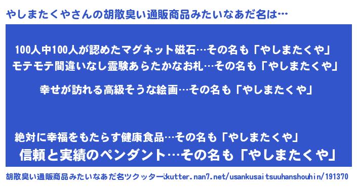 | 意味不明あだ名 | 『やしまたくやフォーエバー』 |