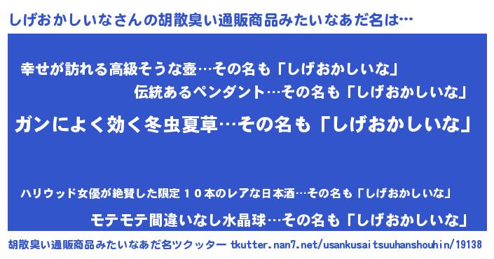 | ヘコむあだ名 | 『つくし』『しげもー』『しげっぺ』 |