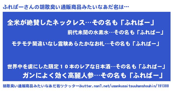 | ヘコむあだ名 | 『ふれもー』『ふれっぺ』『酢こんぶ』 |