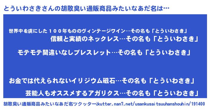 | 意味不明あだ名 | 『ペロリンとういわさき』 |