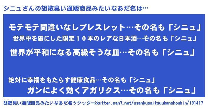 | 男性向けラノベタイトル風あだ名 | 『やはりシニュの青春ラブコメはまちがっている 』 |