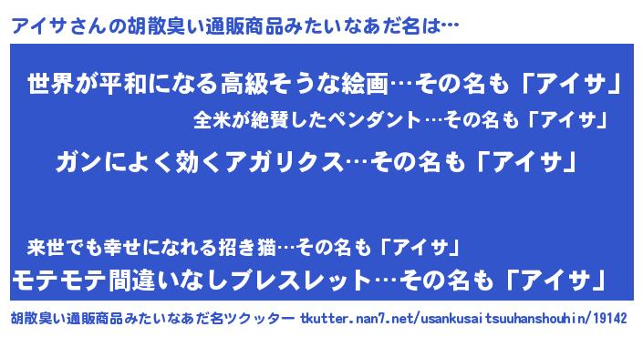 | 男性向けラノベタイトル風あだ名 | 『魔法科高校のアイサ』『アイサの憂鬱』 |