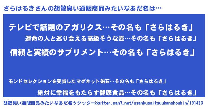 | 恥ずかしいあだ名 | 『サラリンリン』『サラハルキデラックス』 |