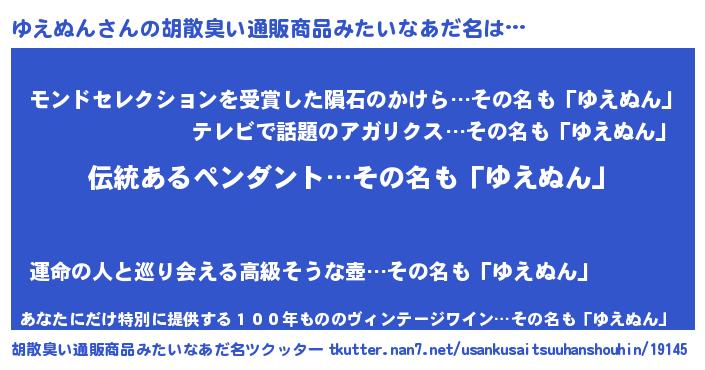 | ヘコむあだ名 | 『ゆえっちょ』『酢こんぶ』 |
