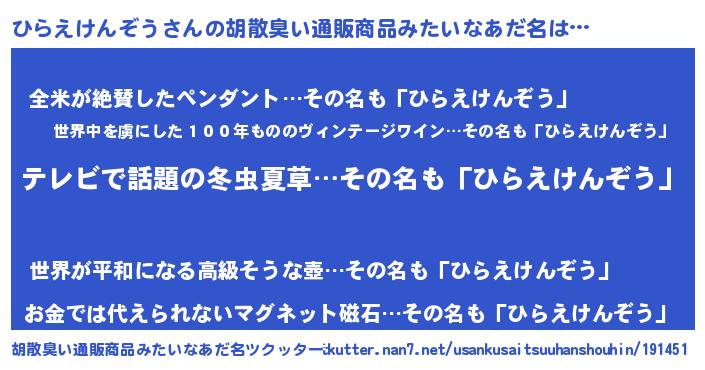 | 意味不明あだ名 | 『自称ひらえけんぞう』 |