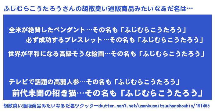 | 肩書あだ名 | 『ふじむらこうたろう総理大臣』 |