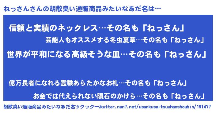 | 意味不明あだ名 | 『ねっさんフォーエバー』『自称ねっさん』 |