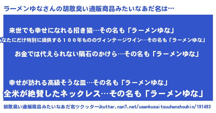 | 意味不明あだ名 | 『眠気覚ましガムラーメンゆな味』 |
