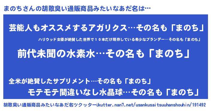 | 意味不明あだ名 | 『永久保存まのち』『もやし科まのち属』 |