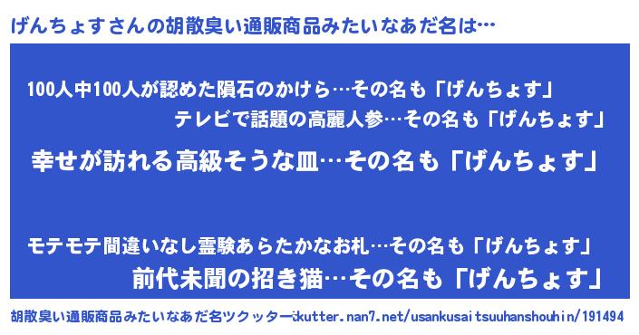 | 意味不明あだ名 | 『げんちょすフォーエバー』 |