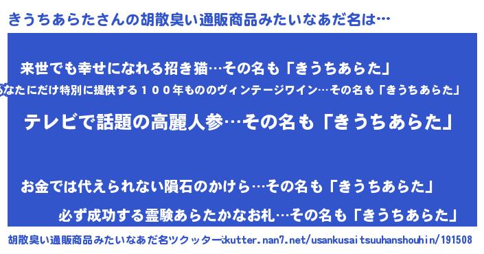 | 意味不明あだ名 | 『自称きうちあらた』 |