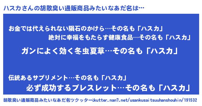 | ヘコむあだ名 | 『ハスもー』『ハスカ(震え声)』 |