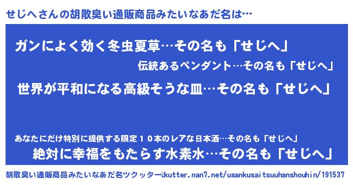 | 肩書あだ名 | 『せじへ国家主席』『せじへ総統』 |