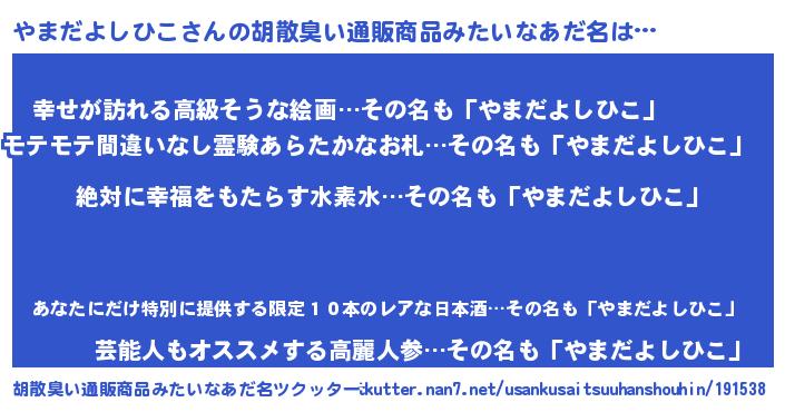 | ヘコむあだ名 | 『やまだよしひこ(苦笑)』『豆乳』 |