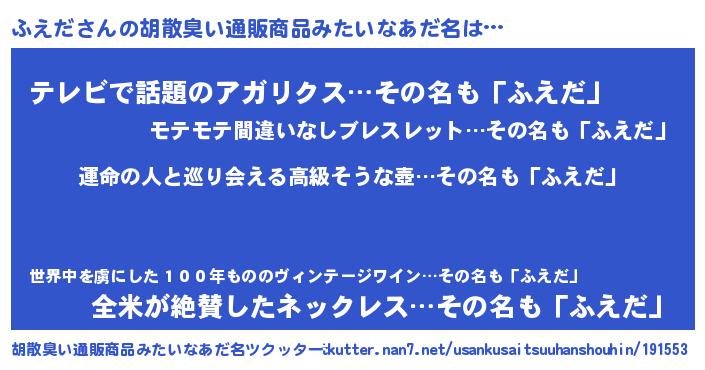 | 意味不明あだ名 | 『ふえだフォーエバー』『自称ふえだ』 |