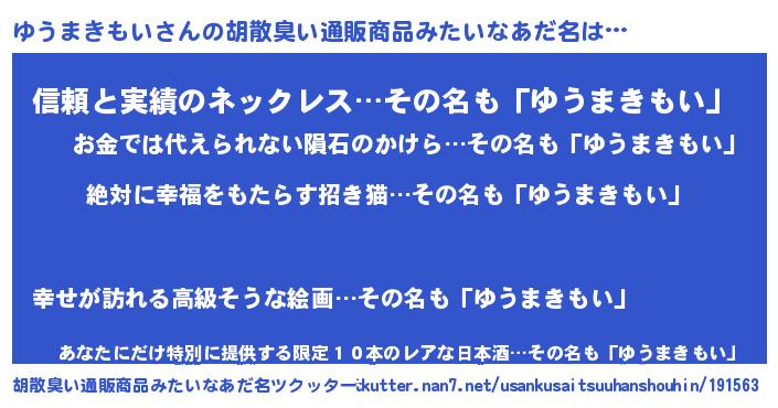 | ヘコむあだ名 | 『ゆうまきもい(小並感)』『ゆう太郎』 |