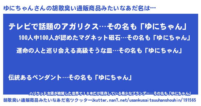 | 欧米人風あだ名 | 『ゆにちゃんクリステル』 |