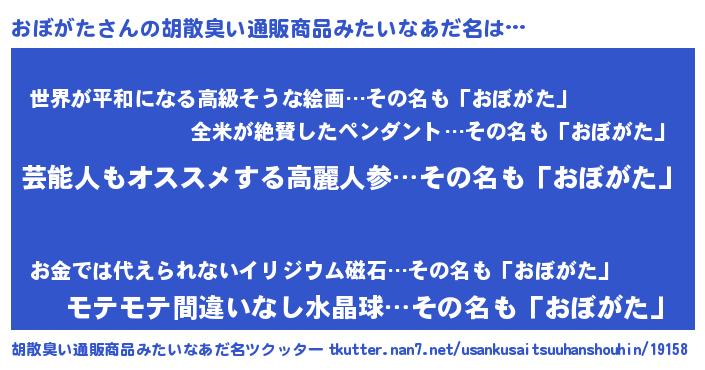 | 意味不明あだ名 | 『自称おぼがた』『おぼがたフォーエバー』 |