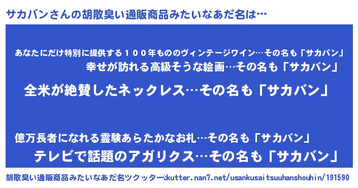 | 意味不明あだ名 | 『とにかく怪しいサカバン』 |