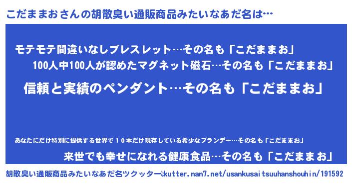 | 意味不明あだ名 | 『とにかく怪しいこだままお』 |