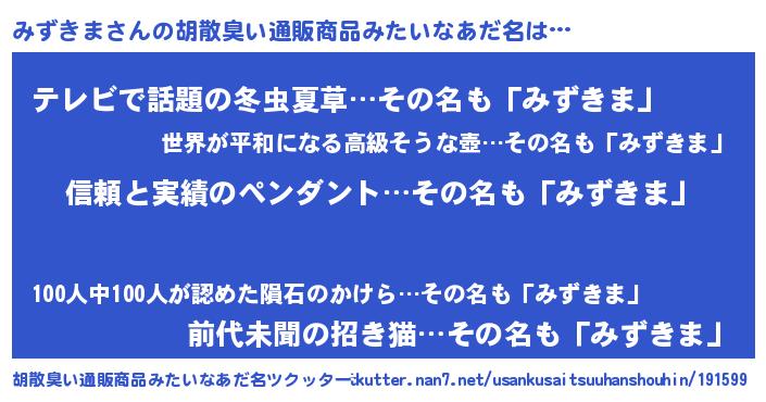 | 意味不明あだ名 | 『とにかく怪しいみずきま』 |