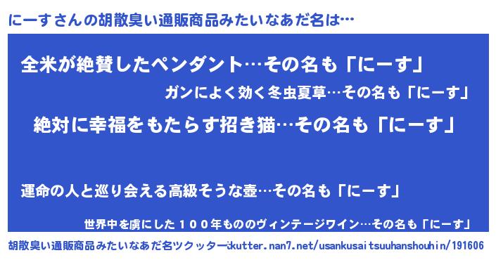 | 意味不明あだ名 | 『永久保存にーす』『自称にーす』 |
