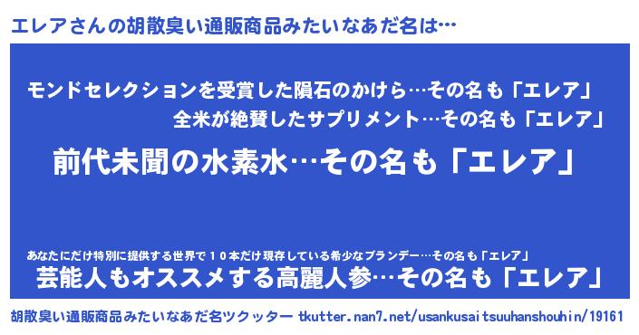 | 意味不明あだ名 | 『永久保存エレア』『エリンギ科エレア属』 |