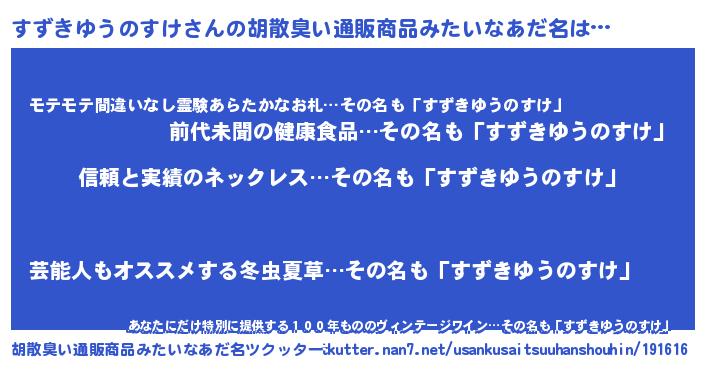 | 男性向けラノベタイトル風あだ名 | 『スズキユウノスケスレイヤー』 |