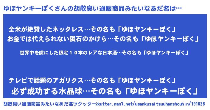 | ヘコむあだ名 | 『ゆほ太郎』『ゆほもー』『つくし』 |