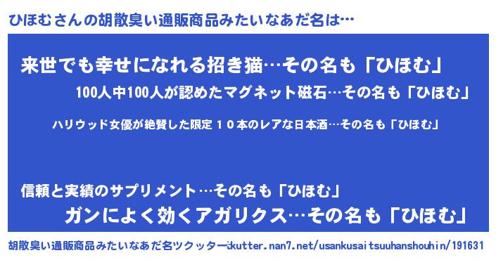| ヘコむあだ名 | 『ひほむ(爆)』『ひほ太郎』『牛乳』 |