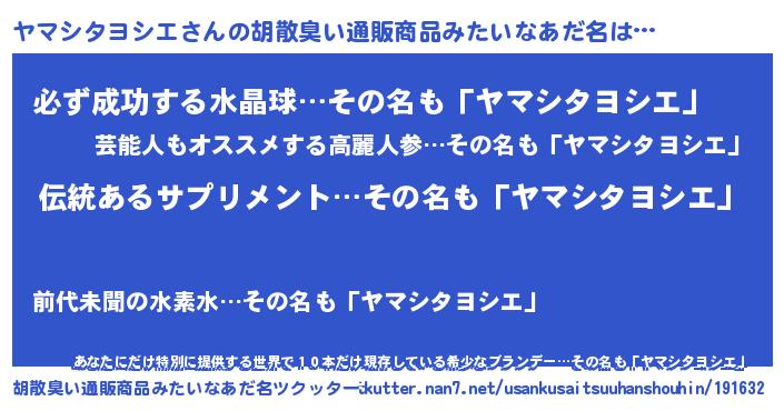 | 意味不明あだ名 | 『とにかく怪しいヤマシタヨシエ』 |