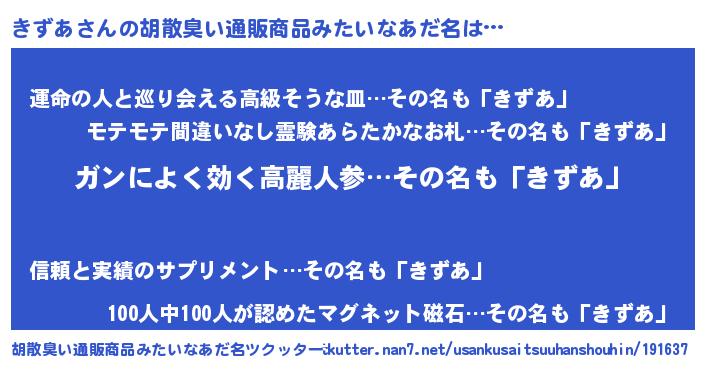 | 意味不明あだ名 | 『自称きずあ』『きずあフォーエバー』 |