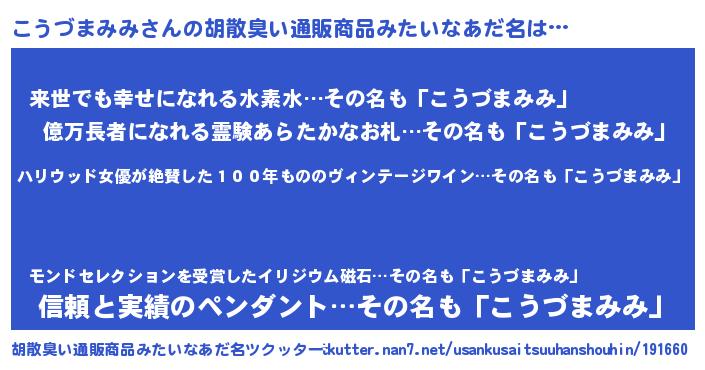 | 伝説のあだ名 | 『聞きしに勝る吟遊詩人こうづまみみ』 |