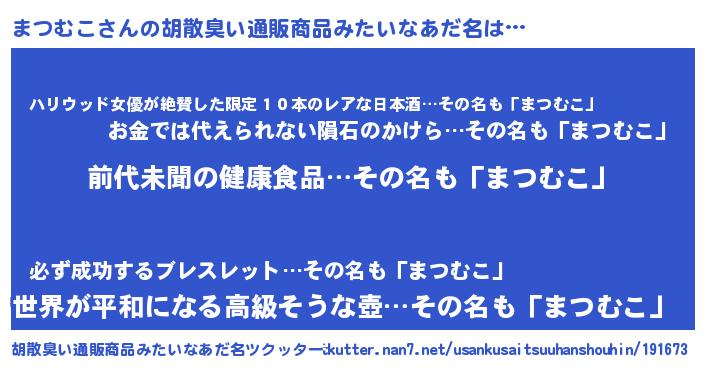 | ヘコむあだ名 | 『まつむこ(笑)』『つくし』 |