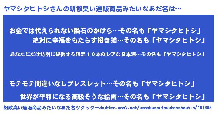 | 意味不明あだ名 | 『住所不定無職ヤマシタヒトシ(40歳)』 |