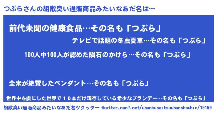 | ヘコむあだ名 | 『つぶら(苦笑)』『つぶっ子』 |
