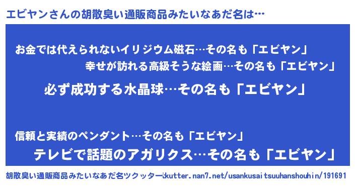 | ヒーロー風カッコイイあだ名 | 『スーパーエビヤン』『愛の使者エビヤン』 |